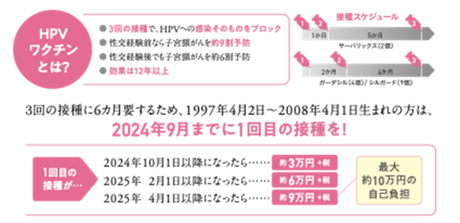 1997年4月2日~2008年4月1日生まれの女性】は、2025年3月までは無料で接種が受けられるようになっております(キャッチアップ接種)